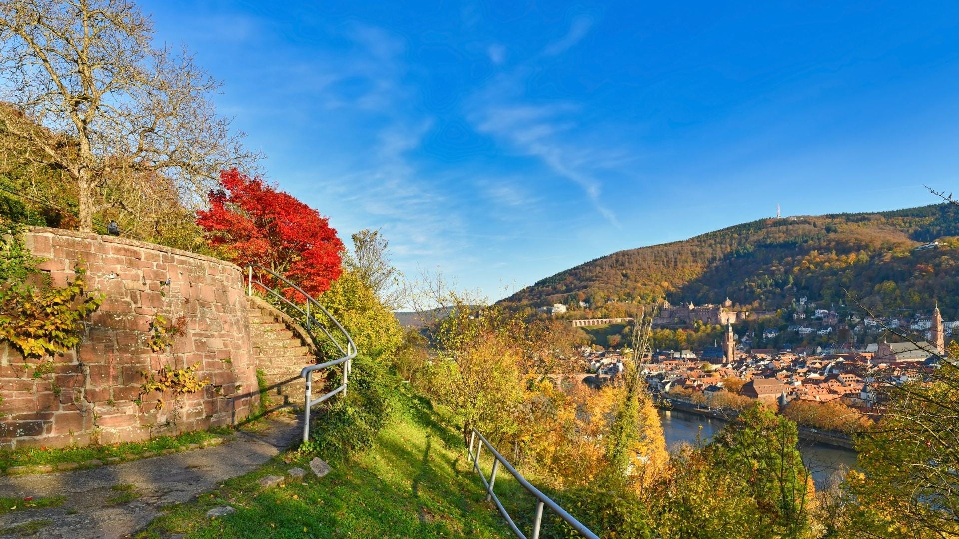 Der Philosophenweg liegt am Hang und liefert den Postkartenblick über Altstadt, Fluss und die Silhouette mit Brücke, Schloss und Königsstuhl. Genau dieser Panorama-Mix macht den Weg so beliebt. Du gehst hier nicht schnell, sondern schaust, atmest und lässt die Perspektive wirken. Mit jedem Stück am Sonnenhang öffnen sich neue Blickwinkel, während unter dir die Stadt leiser wird.